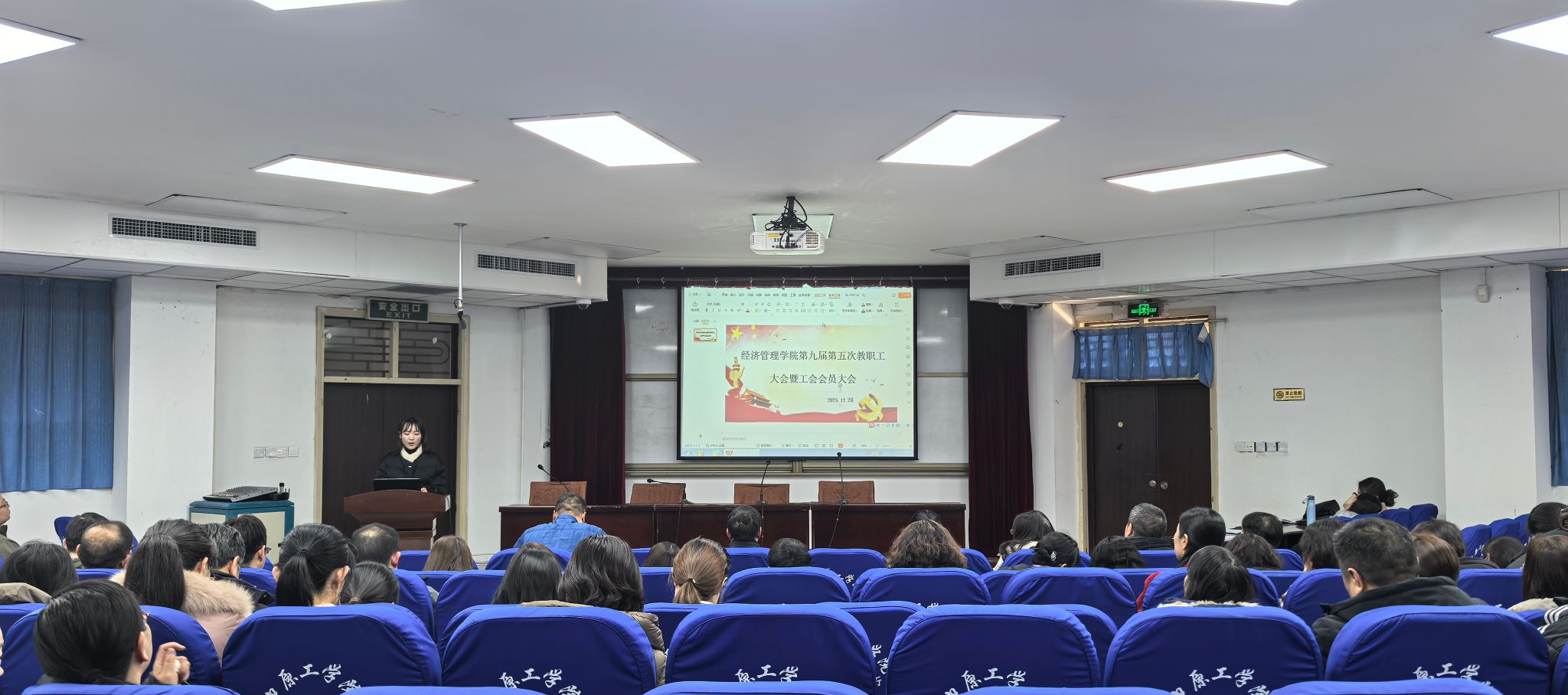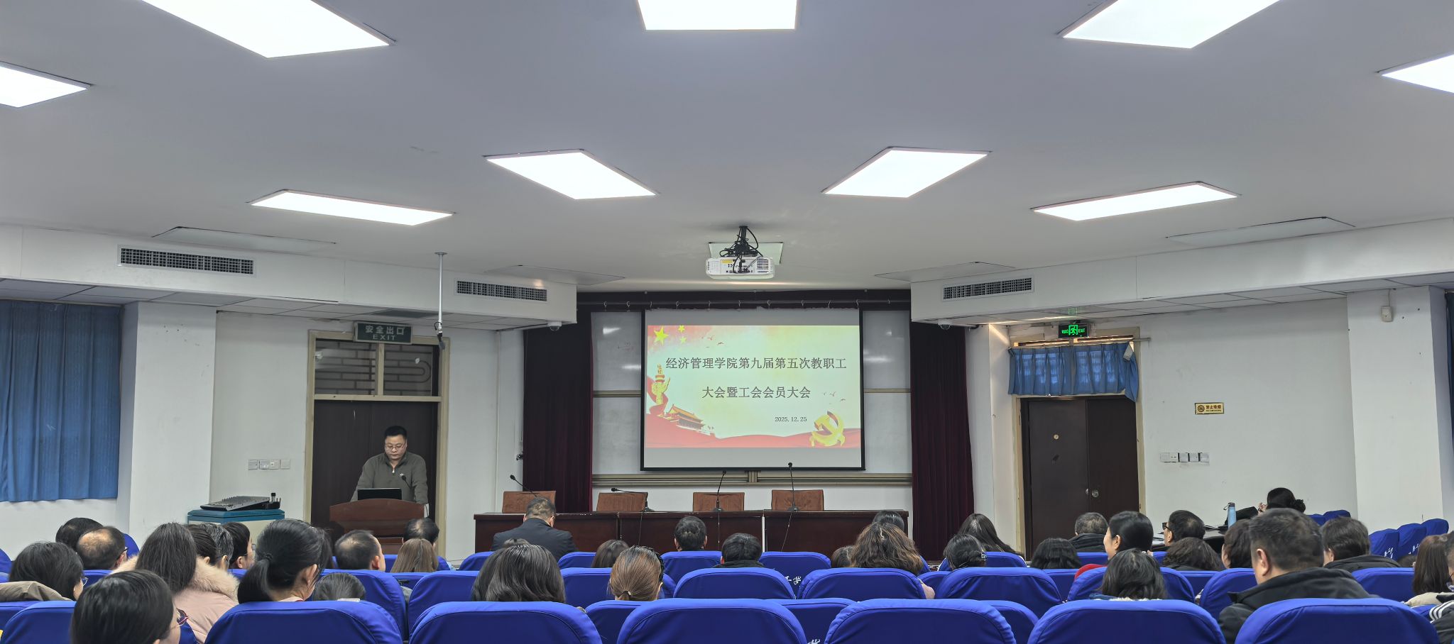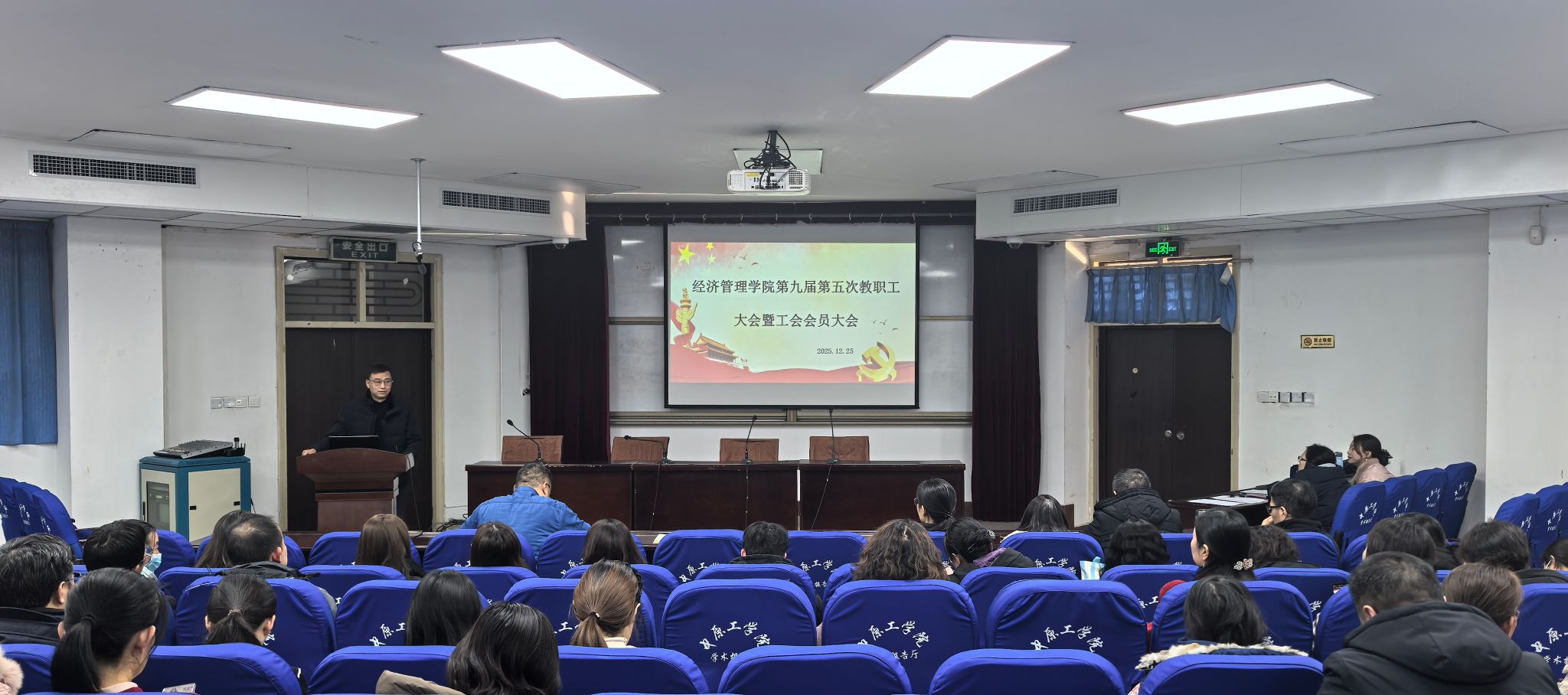 m88官网于2025年12月25日下午召开第九届第五次教职工大会暨工会会员大会。m88官网全体教职工参会,会议由m88官网分工会主席李君主持。
