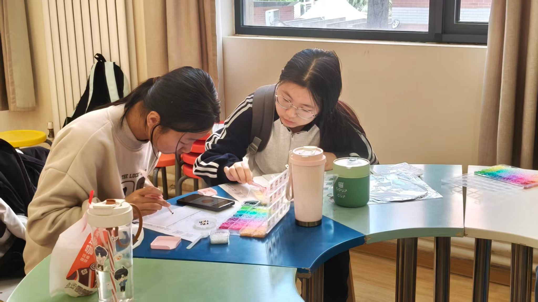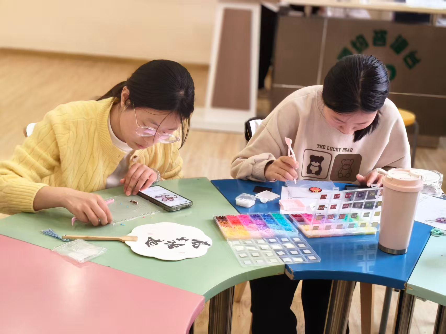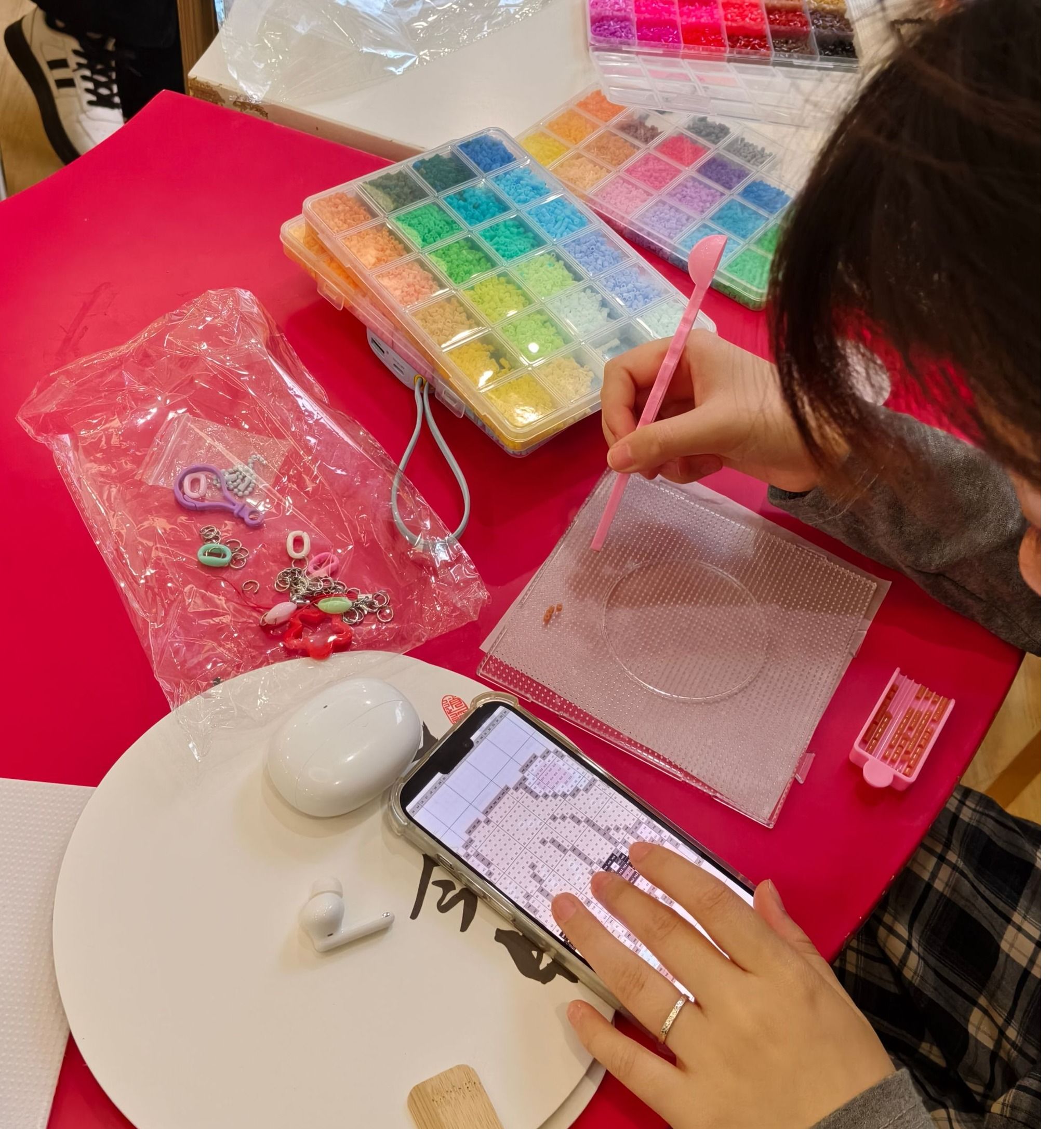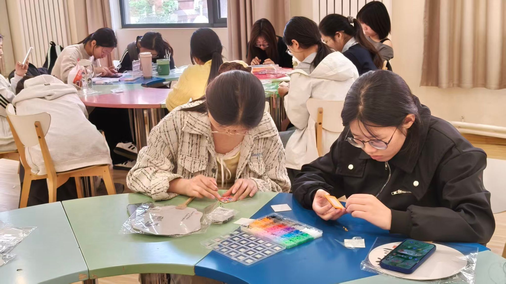 小小的拼豆,藏着大大的创意。活动现场准备了各色拼豆,拼豆创作区也早早围满了同学。拼豆没有固定的图案限制,也无需贴合特定主题,同学们全神贯注地将一颗颗细小的拼豆按照自己的想法排列组合。大家在专注创作中忘却烦恼,感受慢下来的美好,为清明佳节增添了几分灵动童趣。